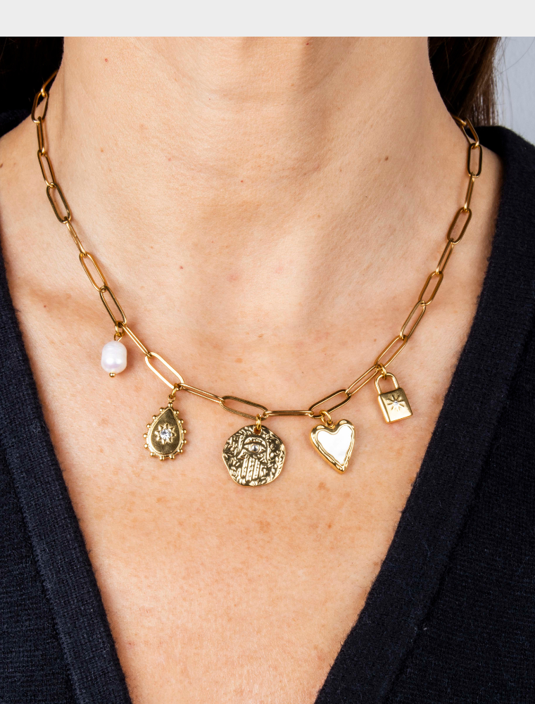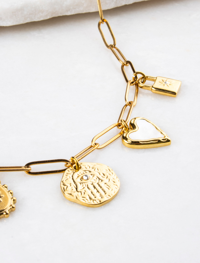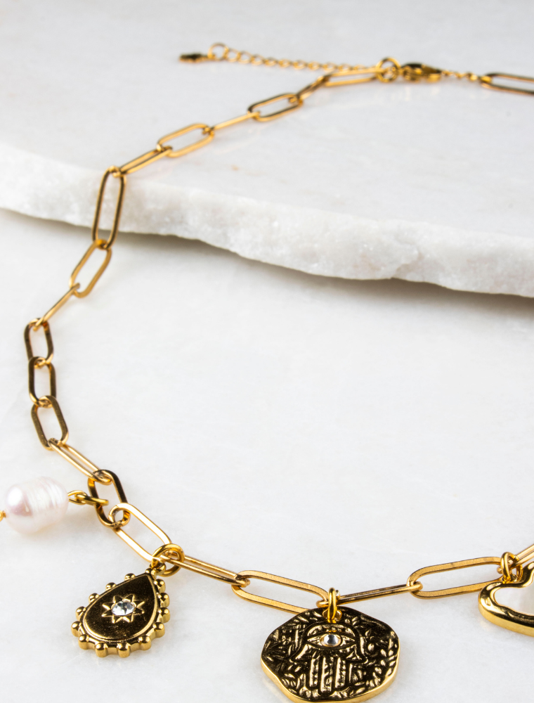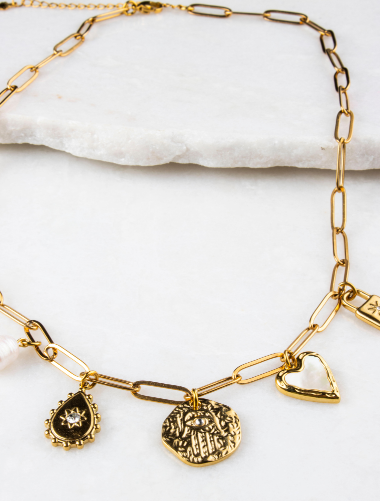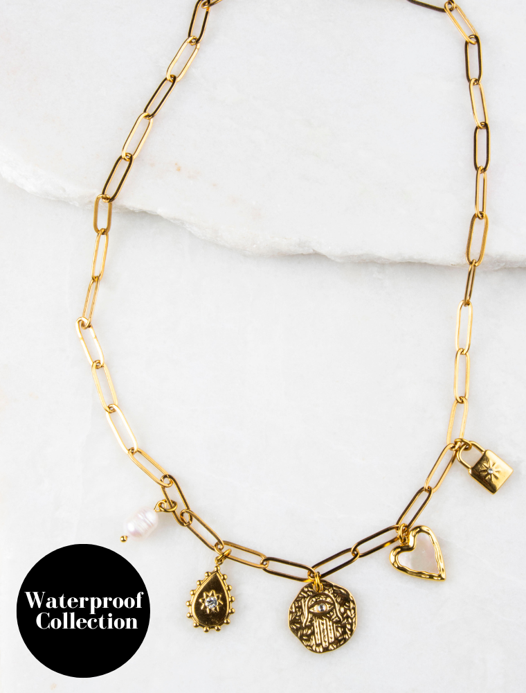 Annie 5 Charm Waterproof Necklace – 18k Gold Plated Stainless Steel