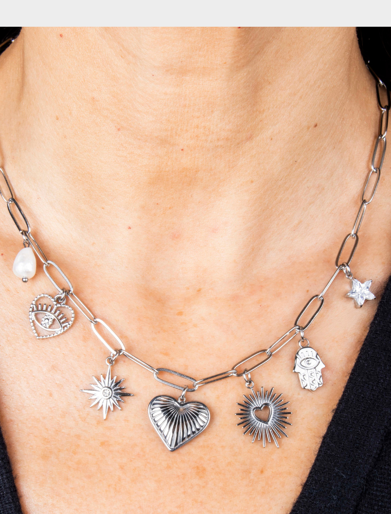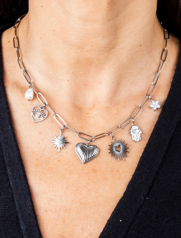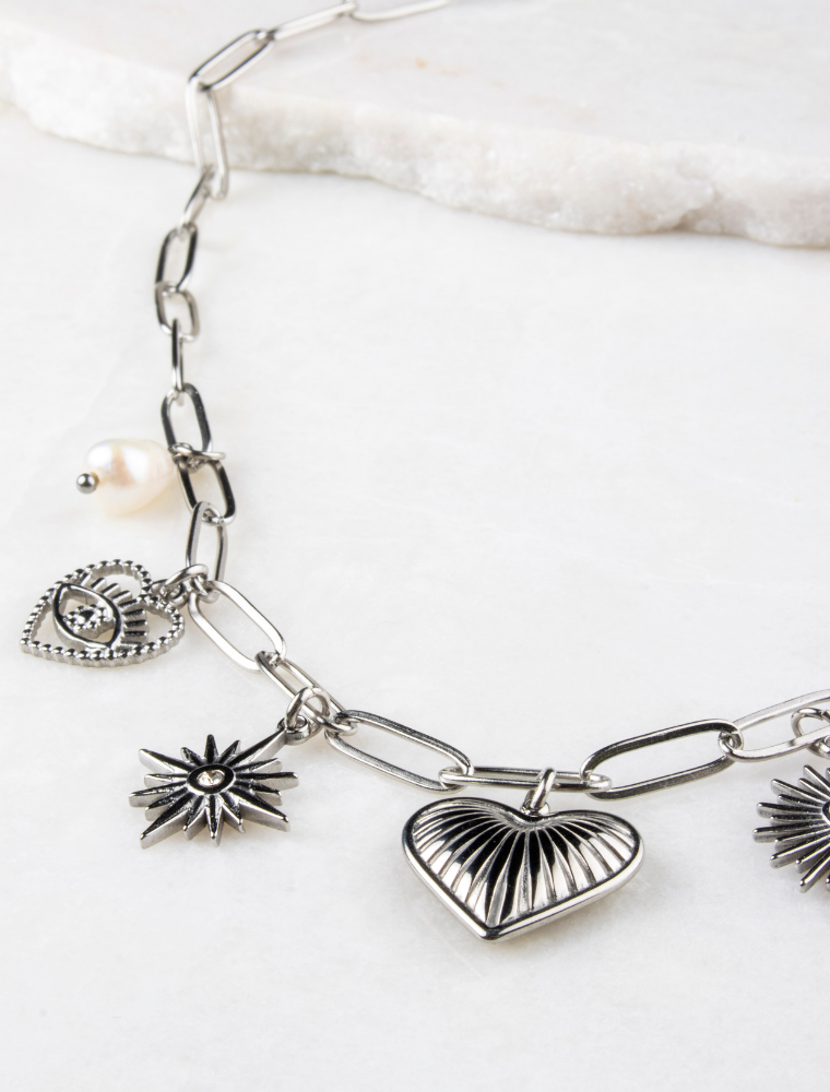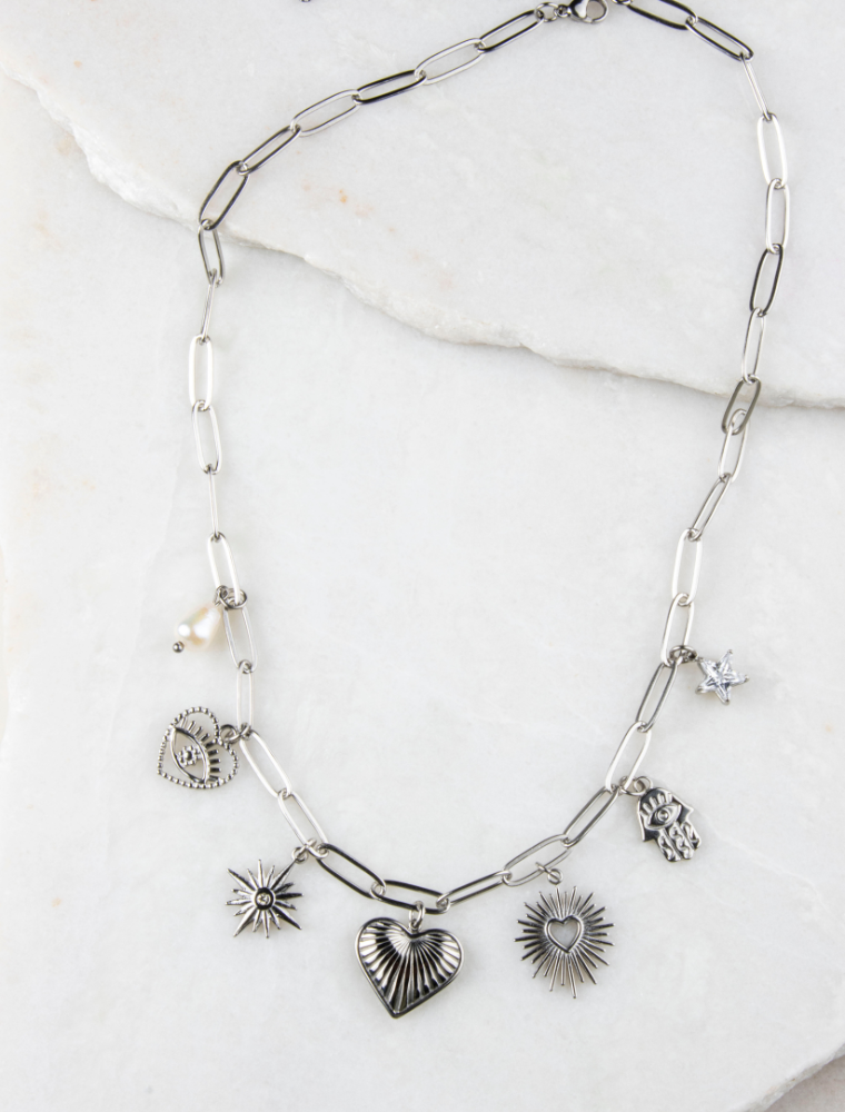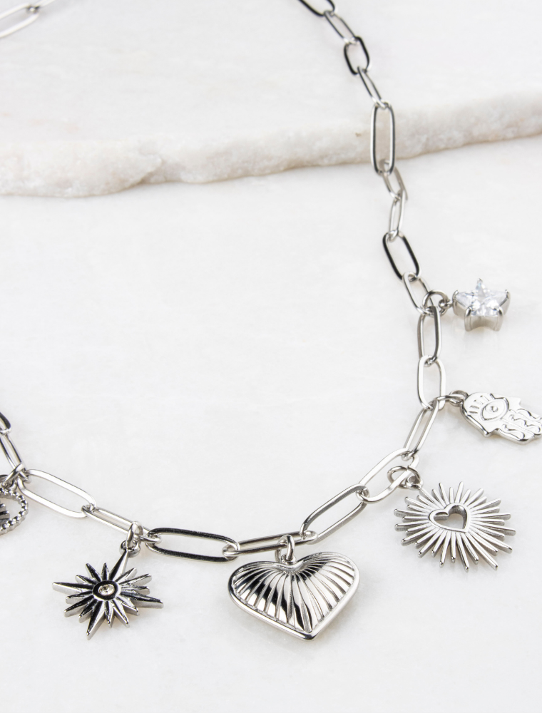 Bronte 7 Charm Necklace – Silver/Stainless Steel