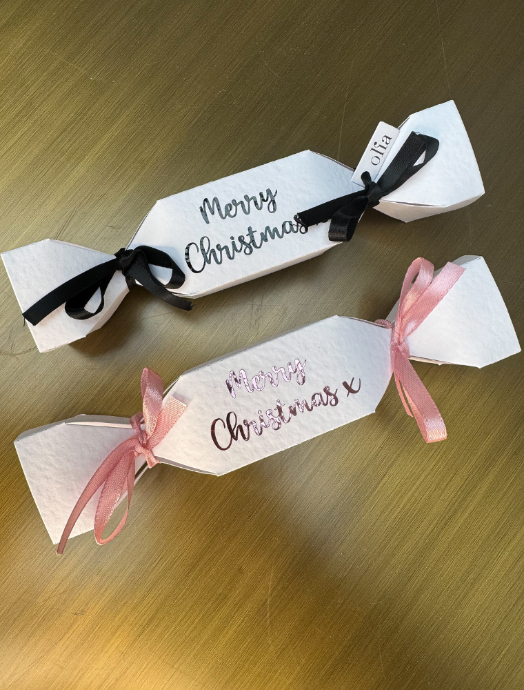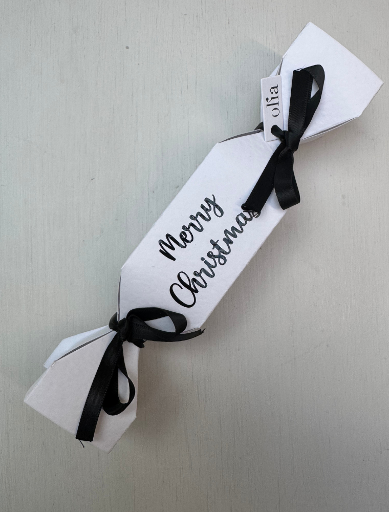 Cute decorative cracker that is perfect to present your Olia gift this Christmas. Perfect size for 1-2 items. Jewellery will be placed in a black organza bag inside the cracker.