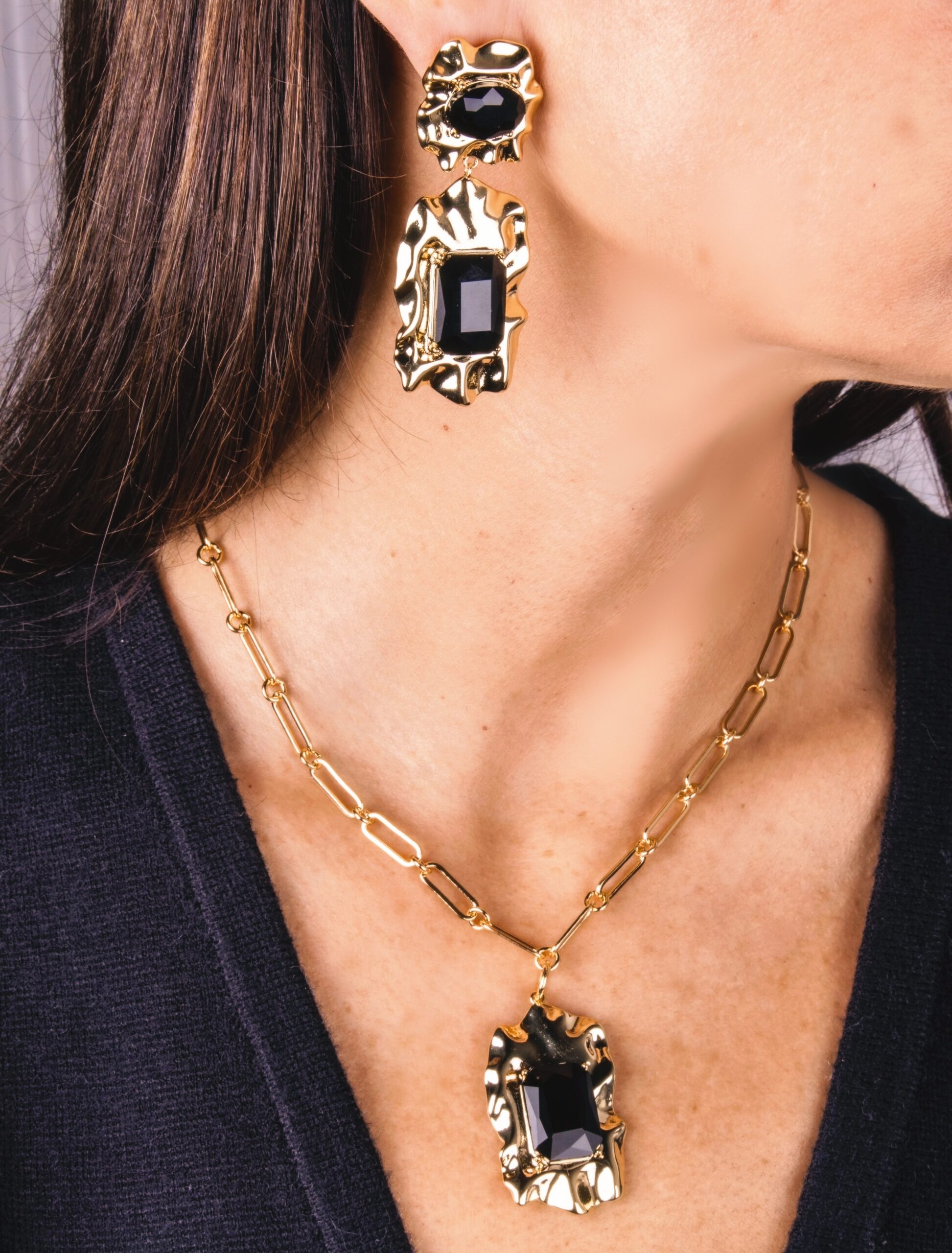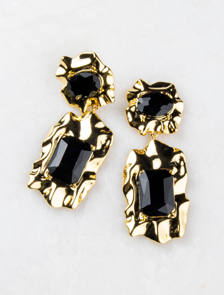 Georgie Statement Hammered Drop Earrings – Gold Plated/Black