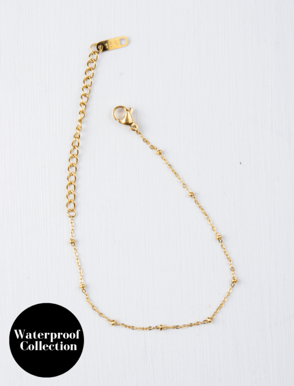 Lottie Superfine Waterproof Ball Chain Bracelet – 18k Gold Plated Stainless Steel.