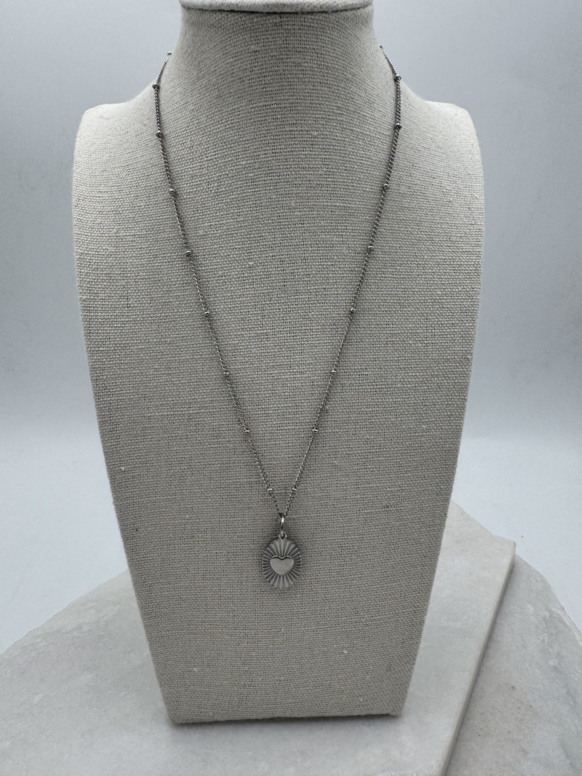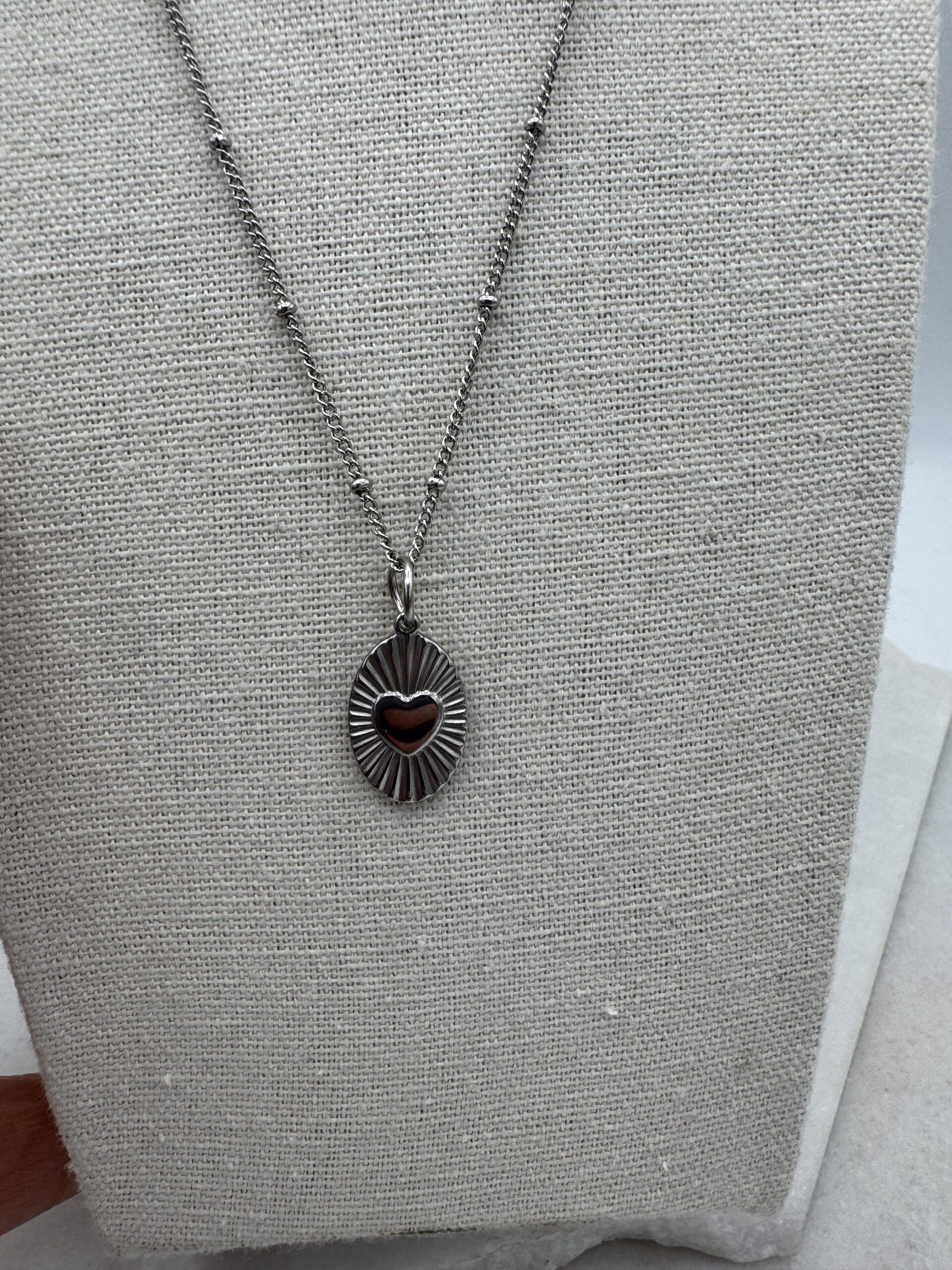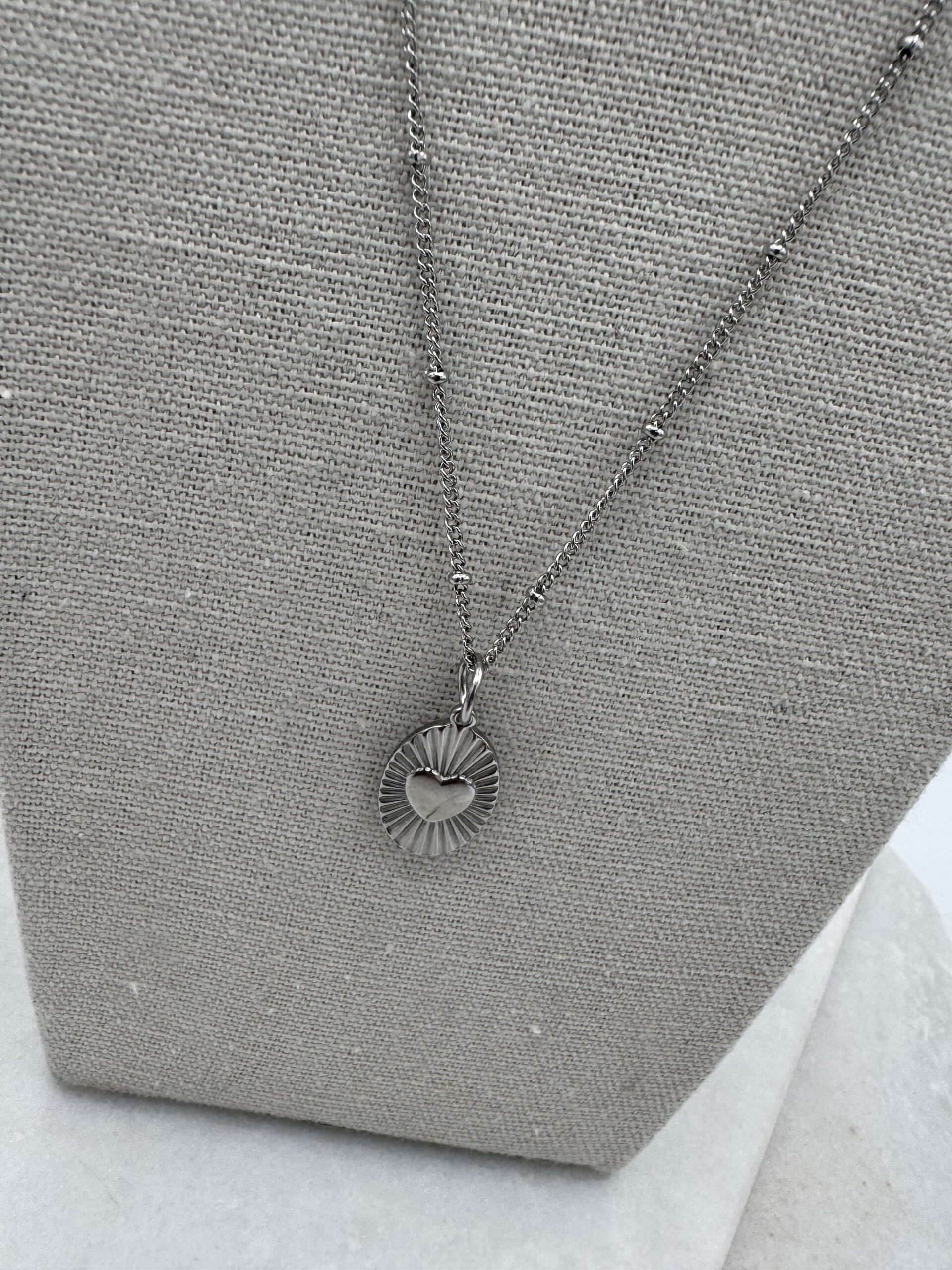 Sample Sale 13- Short silver necklace with heart disc charm.
